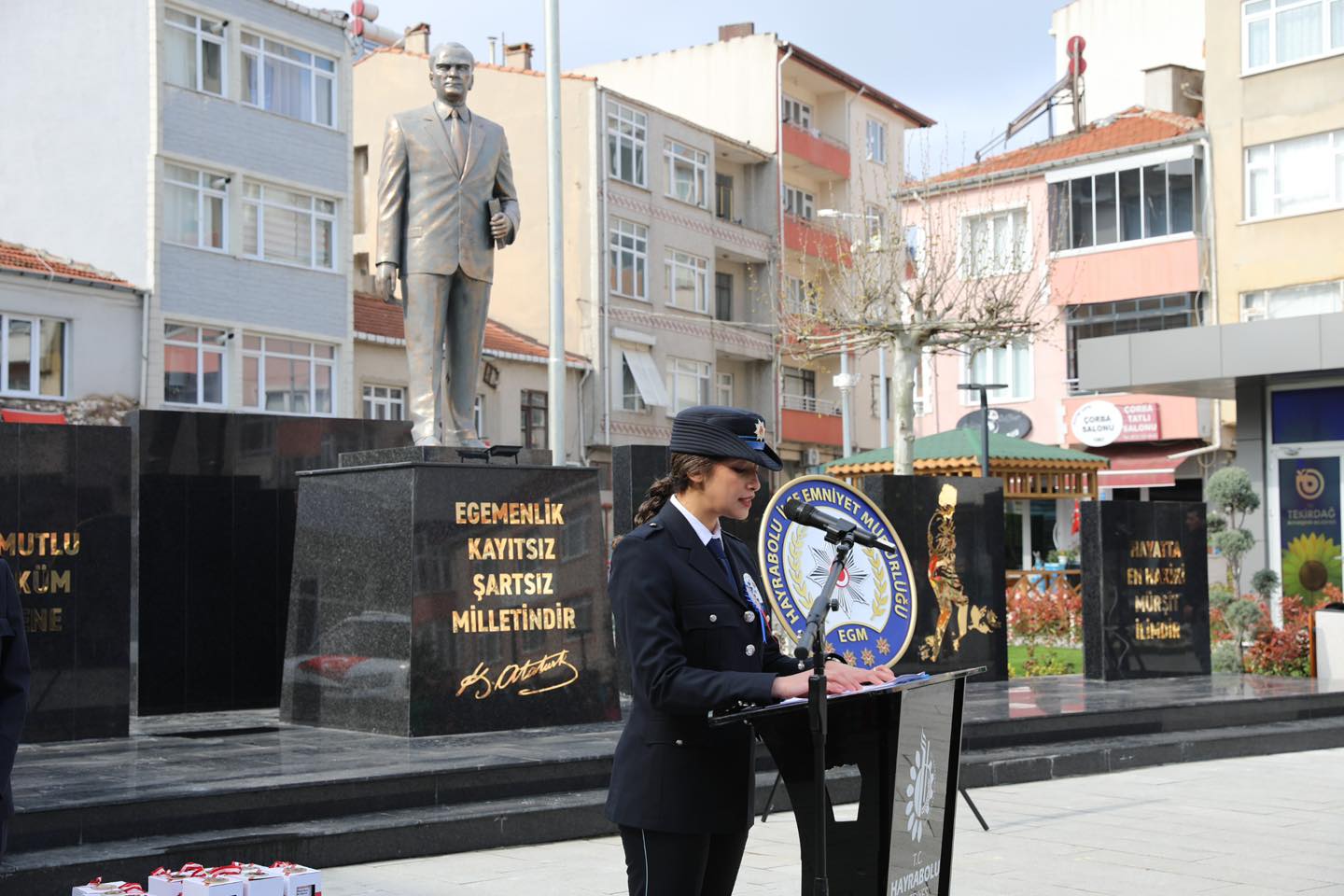 Türk Polis Teşkilatı’nın 181. kuruluş yıl dönümü dolayısıyla Hayrabolu’da çelenk sunma töreni gerçekleştirildi. Düzenlenen programa Belediye Başkanı Tuncer Başoğlu da katılım sağladı.